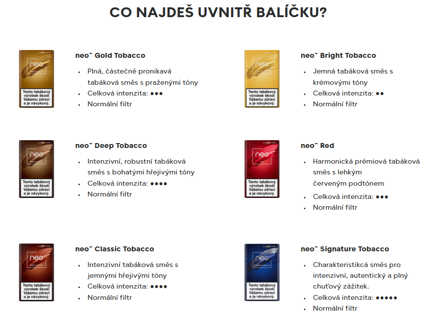 - Nový tabákový výrobek bezdýmný, 20 náplní, celkový obsah tabáku: 5,2 g.
